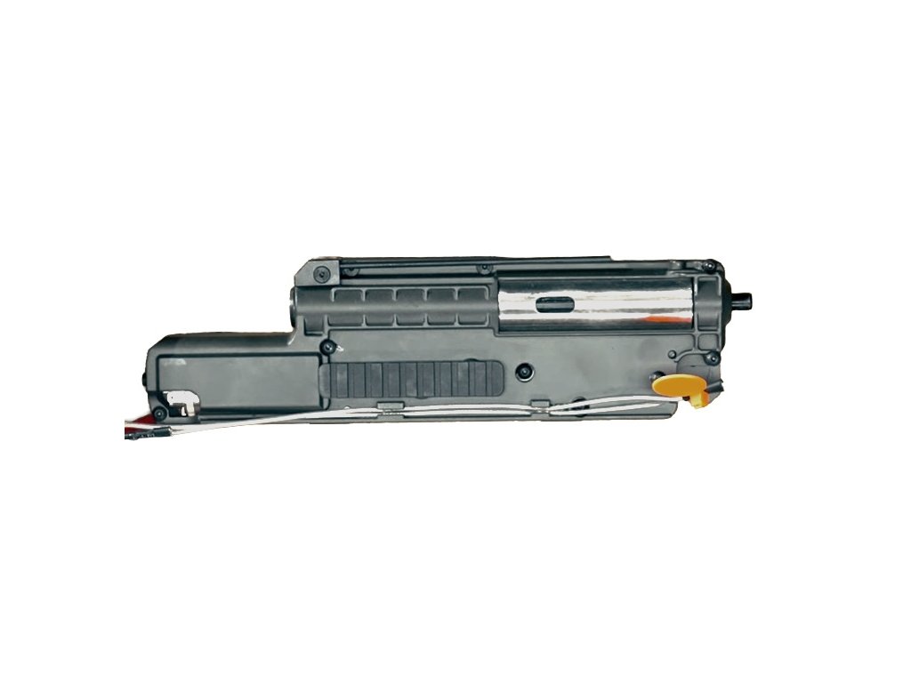 Uvnitř najdeme atypický mechabox s zátěžovým motorem, CNC koly 18:1, zátěžovým pístem se 14 kovovými zuby, nerezovým válcem, 8mm kuličkovými ložisky a QSC trnem pro rychlou výměnu pružiny. Kovová hop-up komora s regulačním prstencem spolu s 6.03mm přesnou hlavní zajišťuje vyšší dostřel a přesnost. Elektrický zásobník pojme až 2000 BBs, napájený 9V baterií (není součástí). Celková konstrukce je pevná a ideální pro dlouhé potlačovací palby.