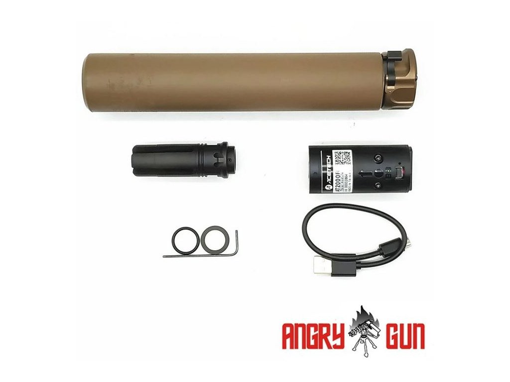 ✅ Angry Gun nasvětlovací tlumič QD SOCOM762 ve variantě Dark Earth (FDE) kombinuje realistické hluboké ražení, odolnou konstrukci z leteckého hliníku 6061 a integrovaný AT2000R nasvětlovací modul — ideální pro airsoftové hráče, kteří chtějí autentický vzhled, možnost nasvětlování Tracer BBs a rychlé QD nasazení.