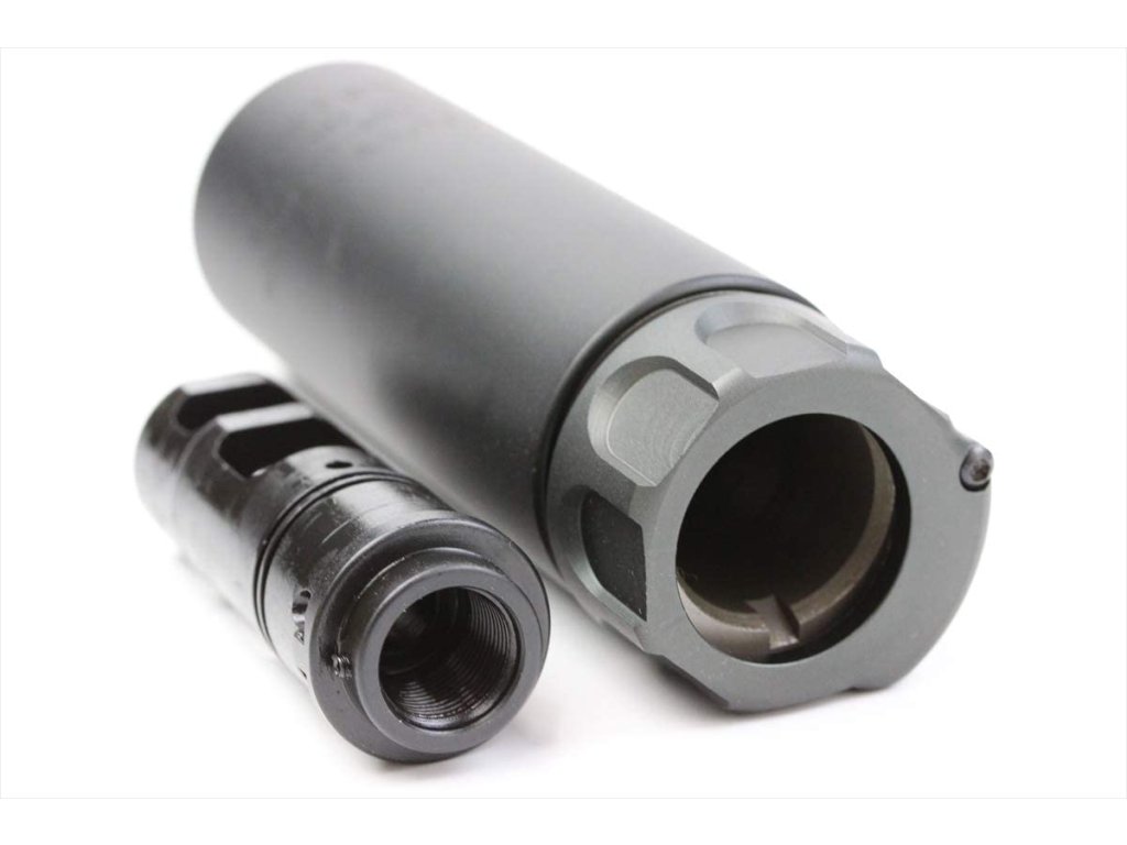 Tělo tlumiče je vyrobeno z 6061-T6 leteckého hliníku s povrchovou úpravou, která zajišťuje odolnost proti opotřebení a přirozený matný vzhled. Ražení SUREFIRE je provedené hlubokou technikou, která dodává autentický industriální vzhled. Vnitřní komponenty upínacího systému jsou z oceli pro zvýšenou odolnost a dlouhou životnost při opakovaném nasazování/odejmutí. Součástí balení je QD úsťová brzda s QPQ úpravou, na kterou se pomocí 14-mm levotočivého závitu (CCW) nasadí tlumič — samotné zajištění probíhá zasunutím do vodících drážek a otočením základny, čímž se dosáhne pevného, bezpečného spojení bez použití nářadí. Airsoftová verze je určena pro estetiku a modulární použití; skutečné tlumení hluku závisí na typu zbraně a případných vložkách, které nejsou součástí dodávky.