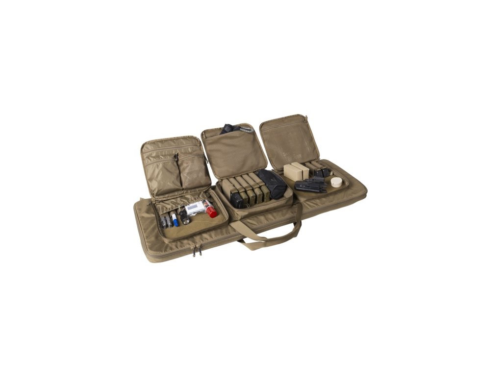 Tato brašna umožňuje přenášení dvou zbraní typu AR-15 nebo AK, včetně pušky s optikou nebo dvou kratších konfigurací bez zaměřovače. Hlavní komora je vybavena stahovacími smyčkami pro pevné uchycení výzbroje, doplněna elastickými pásky pro uložení čisticích prostředků a příslušenství. Na vnější straně se nachází tři prostorné kapsy na zip, každá kompatibilní s Versatile Insert System (VIS) pro modulární rozšíření. Čtyři pevná madla a odnímatelné ramenní popruhy, které lze skrýt, umožňují pohodlné nošení. Materiál z odolného nylonu a maskovací provedení Multicam zajišťují spolehlivost a diskrétní vzhled.