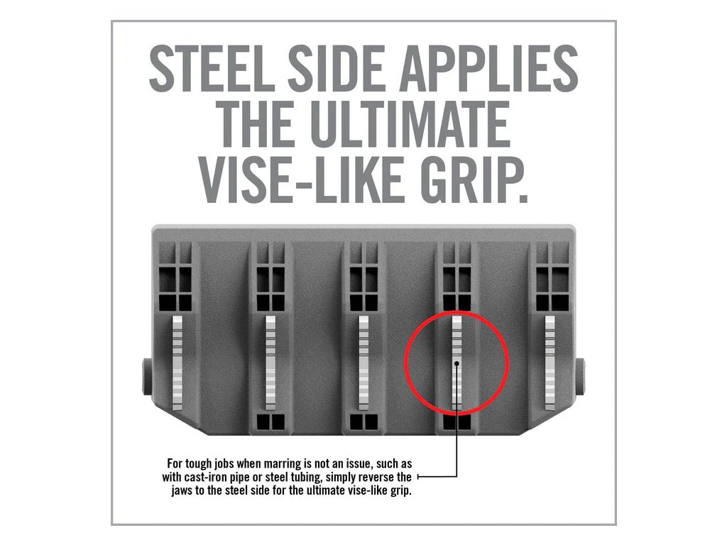 Smart-Jaws Tube-Fit představují revoluční řešení pro bezpečné uchycení válcových objektů při údržbě a úpravách zbraní i dílenských pracích. Čelisti nabízí dvoustranný design: gumová V-drážka je ideální pro citlivé a tepelně namáhané předměty (např. tlumiče a hlavně), kde nehrozí poškození povrchu. Po otočení získáte kovovou V-drážku pro extrémně pevné uchycení odolných materiálů, jako jsou litinové a ocelové trubky. Povrch čelistí je odolný vůči teplu a nepoškozuje upínané objekty. Rychlá a snadná výměna bez nutnosti nářadí umožňuje přizpůsobení dle aktuální potřeby. Kompatibilní pouze se svěrákem Master Gun Vise.