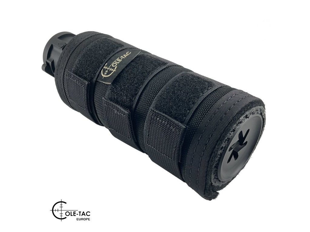 Obal Cole-TAC HTP chrání jak samotný tlumič před poškozením, tak zejména střelce před popálením nebo poškozením vybavení náhodným kontaktem s rozpáleným tlumičem.