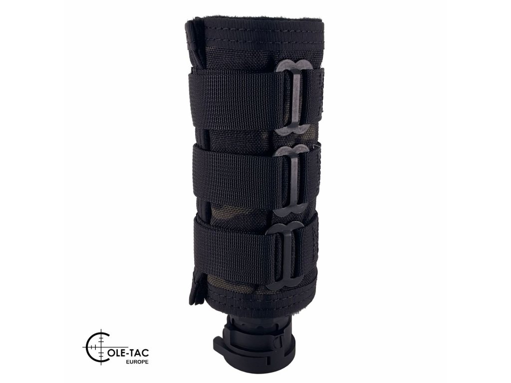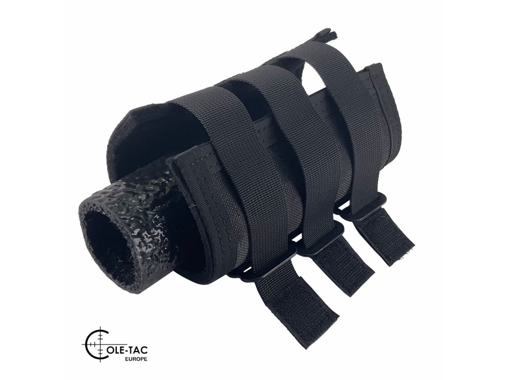 Obal Cole-TAC HTP chrání jak samotný tlumič před poškozením, tak zejména střelce před popálením nebo poškozením vybavení náhodným kontaktem s rozpáleným tlumičem.