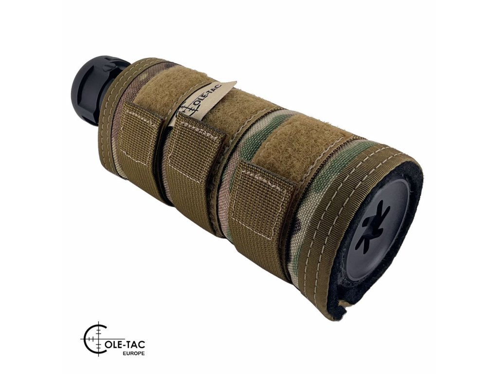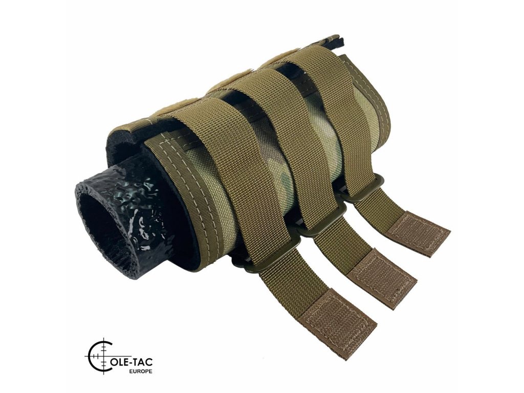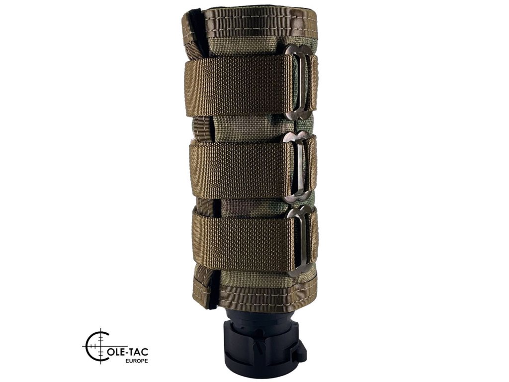 Obal Cole-TAC HTP chrání jak samotný tlumič před poškozením, tak zejména střelce před popálením nebo poškozením vybavení náhodným kontaktem s rozpáleným tlumičem.