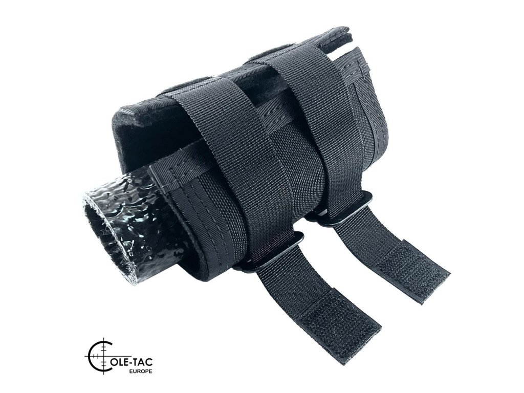 Obal Cole-TAC HTP chrání jak samotný tlumič před poškozením, tak zejména střelce před popálením nebo poškozením vybavení náhodným kontaktem s rozpáleným tlumičem.