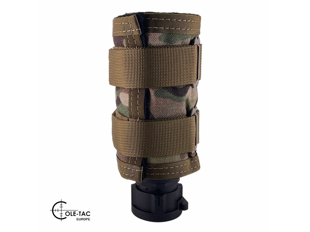 Obal Cole-TAC HTP chrání jak samotný tlumič před poškozením, tak zejména střelce před popálením nebo poškozením vybavení náhodným kontaktem s rozpáleným tlumičem.