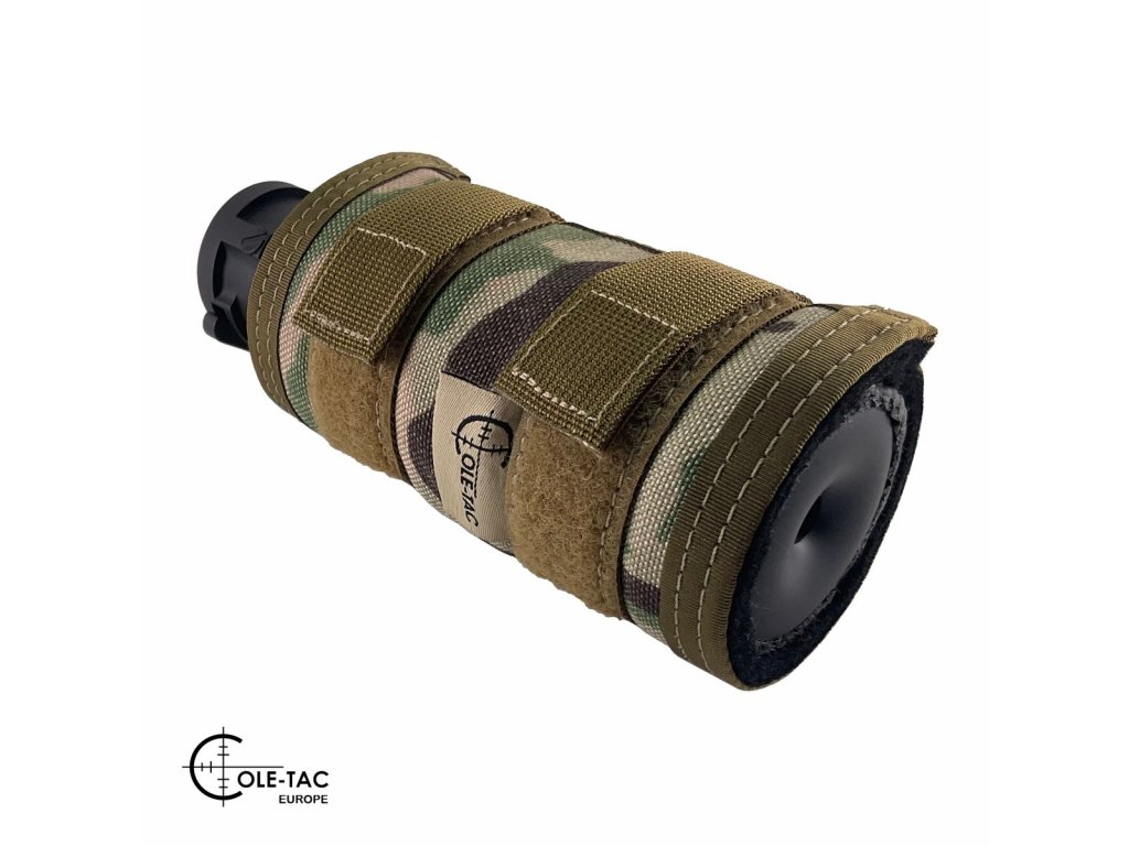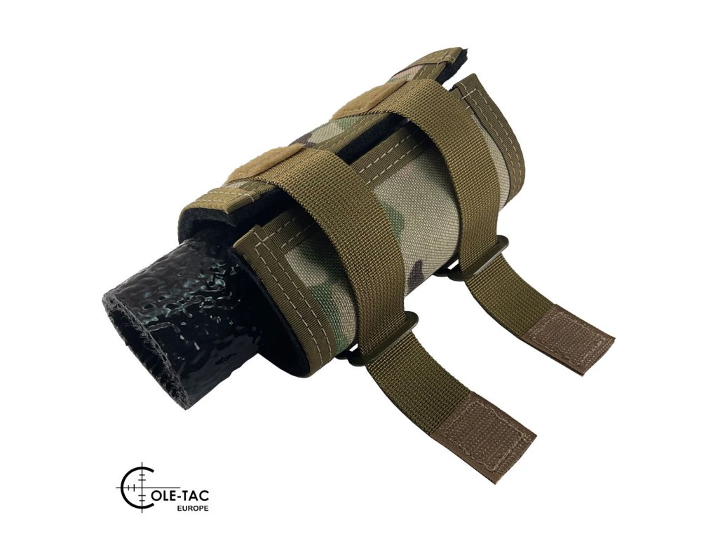 Obal Cole-TAC HTP chrání jak samotný tlumič před poškozením, tak zejména střelce před popálením nebo poškozením vybavení náhodným kontaktem s rozpáleným tlumičem.