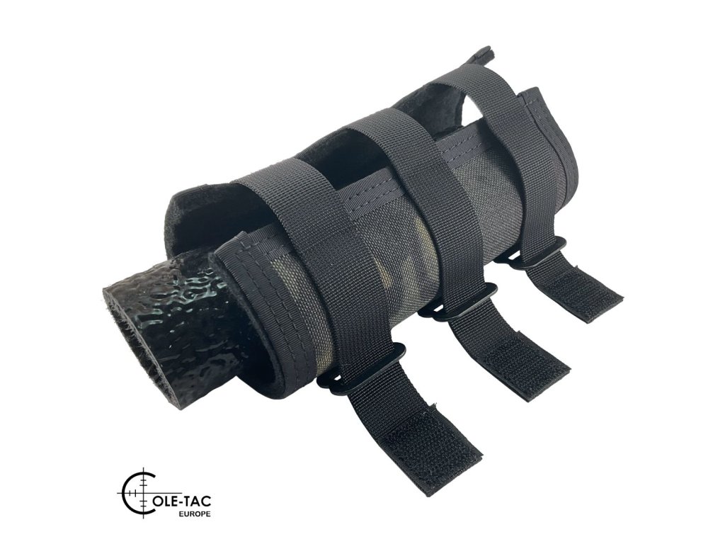 Obal Cole-TAC HTP chrání jak samotný tlumič před poškozením, tak zejména střelce před popálením nebo poškozením vybavení náhodným kontaktem s rozpáleným tlumičem.
