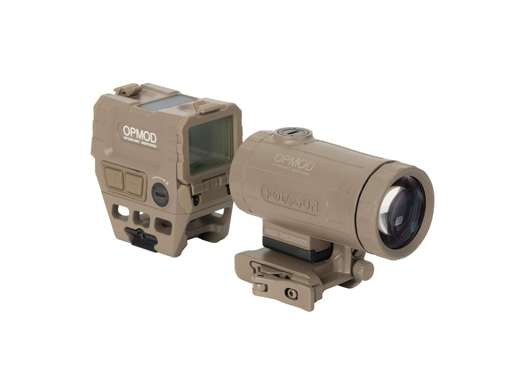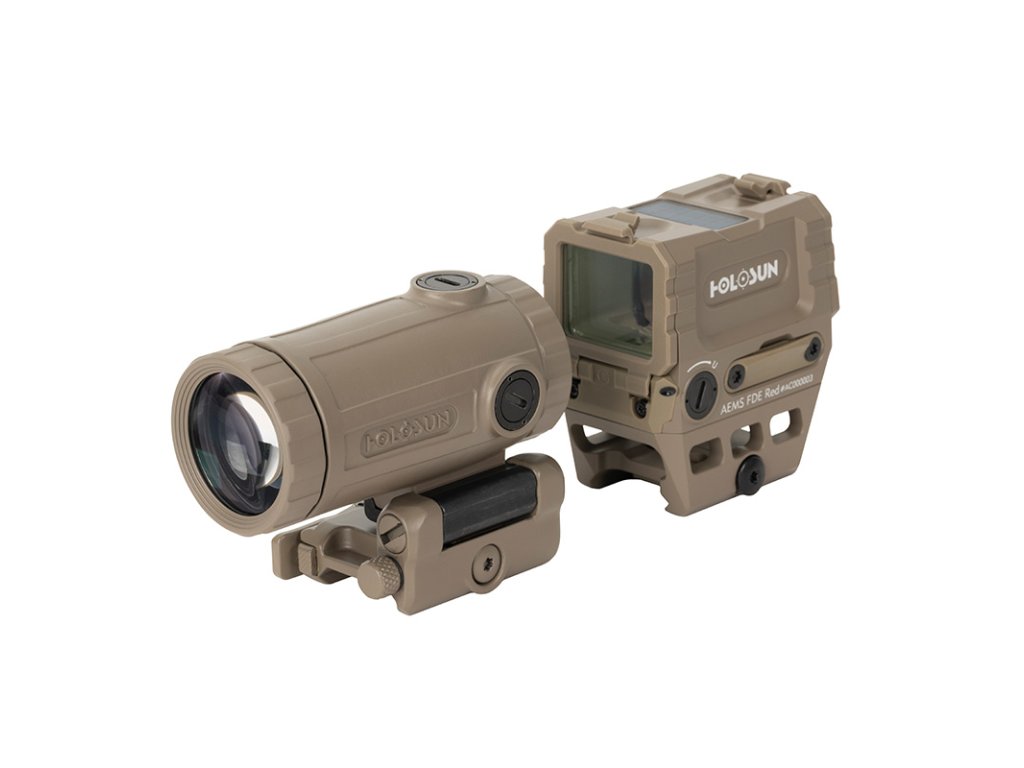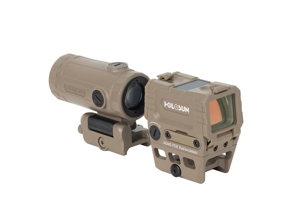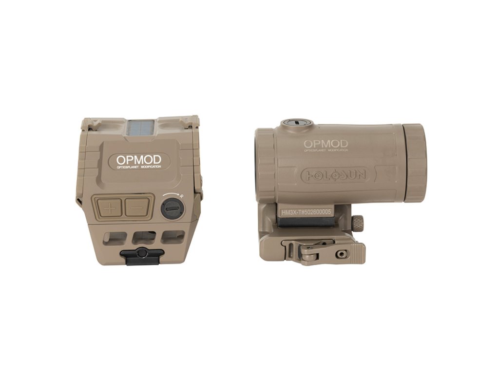 Kolimátor Holosun AEMS RED + zvětšovací modul HM3XT pro Picatinny Rail – FDE OPMOD Combo Kit