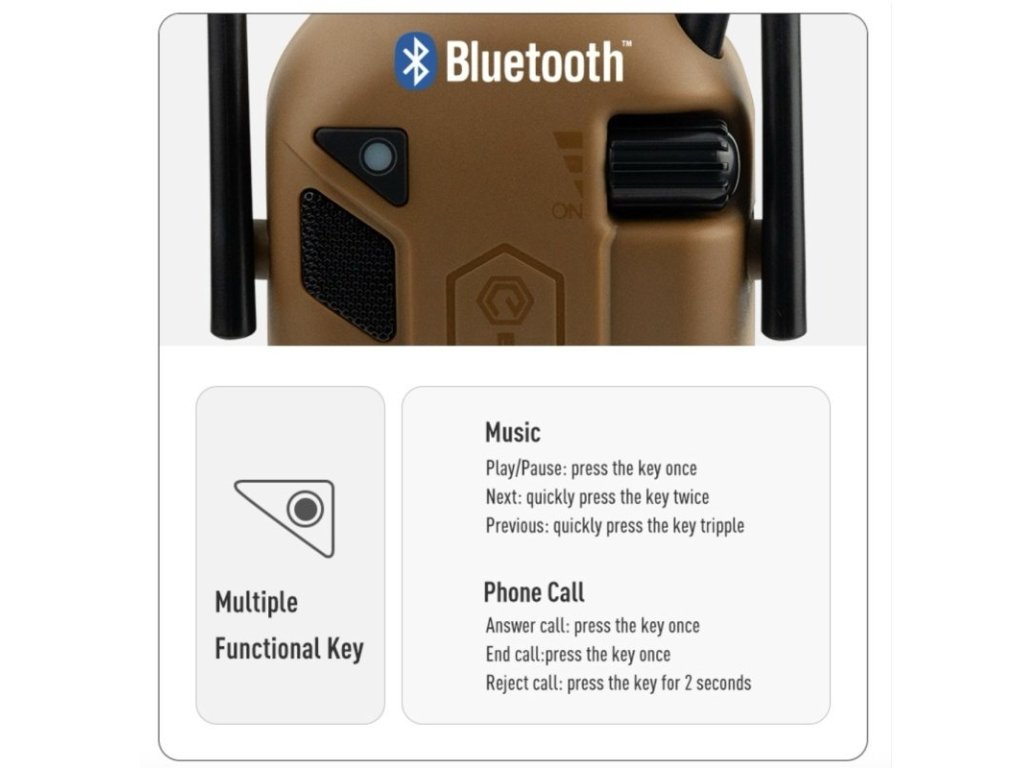 Elektronická sluchátka EARMOR M300T Bluetooth nabízejí nejen špičkovou ochranu sluchu, ale také bezdrátové propojení s mobilním telefonem nebo vysílačkou díky moderní technologii Bluetooth 5.4. Integrovaný digitální čip okamžitě utlumí škodlivé zvuky nad 82 dB během 1 ms a zároveň zesiluje důležité okolní zvuky. Tři režimy snímání okolí, otočný multifunkční ovladač hlasitosti, ergonomická skládací konstrukce a gelové těsnicí náušníky poskytují maximální pohodlí i při dlouhodobém nošení. Voděodolné provedení IPX5 chrání sluchátka v dešti nebo vlhkém prostředí.