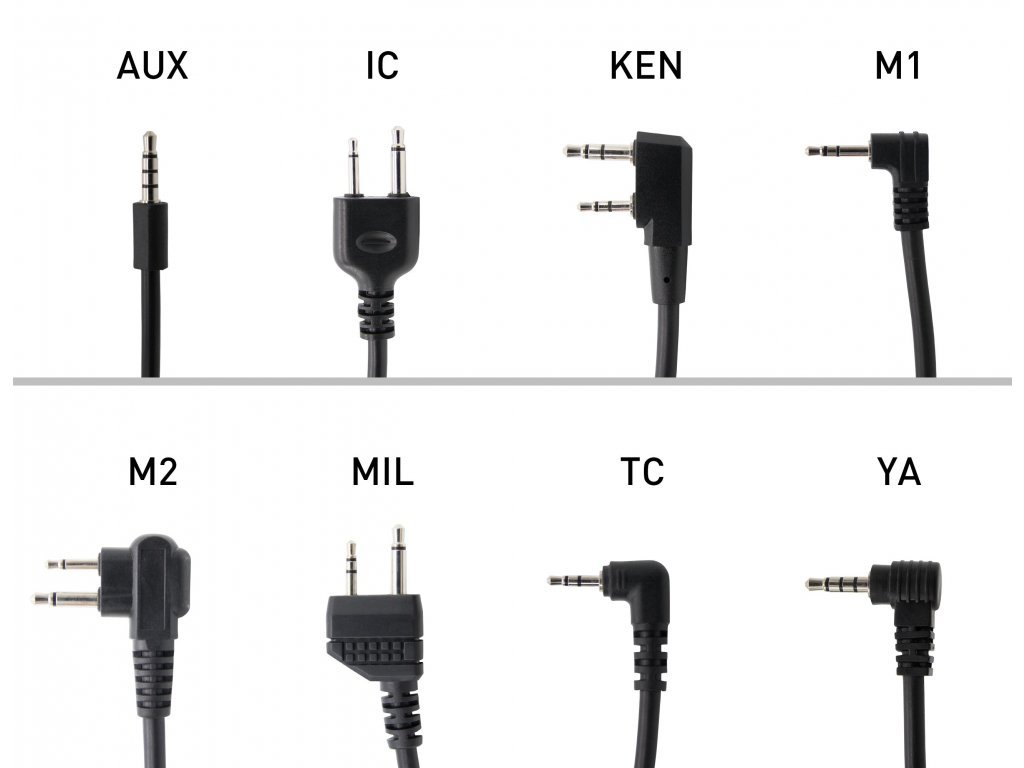 Tento PTT spínač je vybaven vojenským konektorem Nexus TP-120 / 7.0 NATO (MIL-STD 4-pin) pro připojení taktických headsetů Earmor M32, M32H, M31, M31H apod.