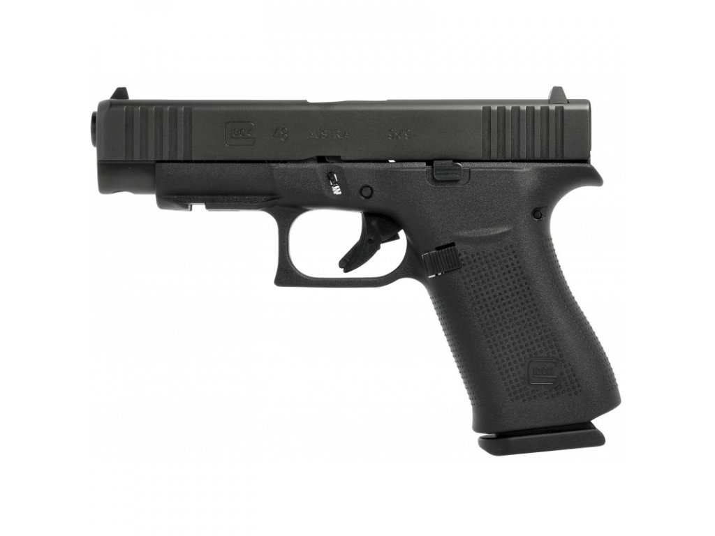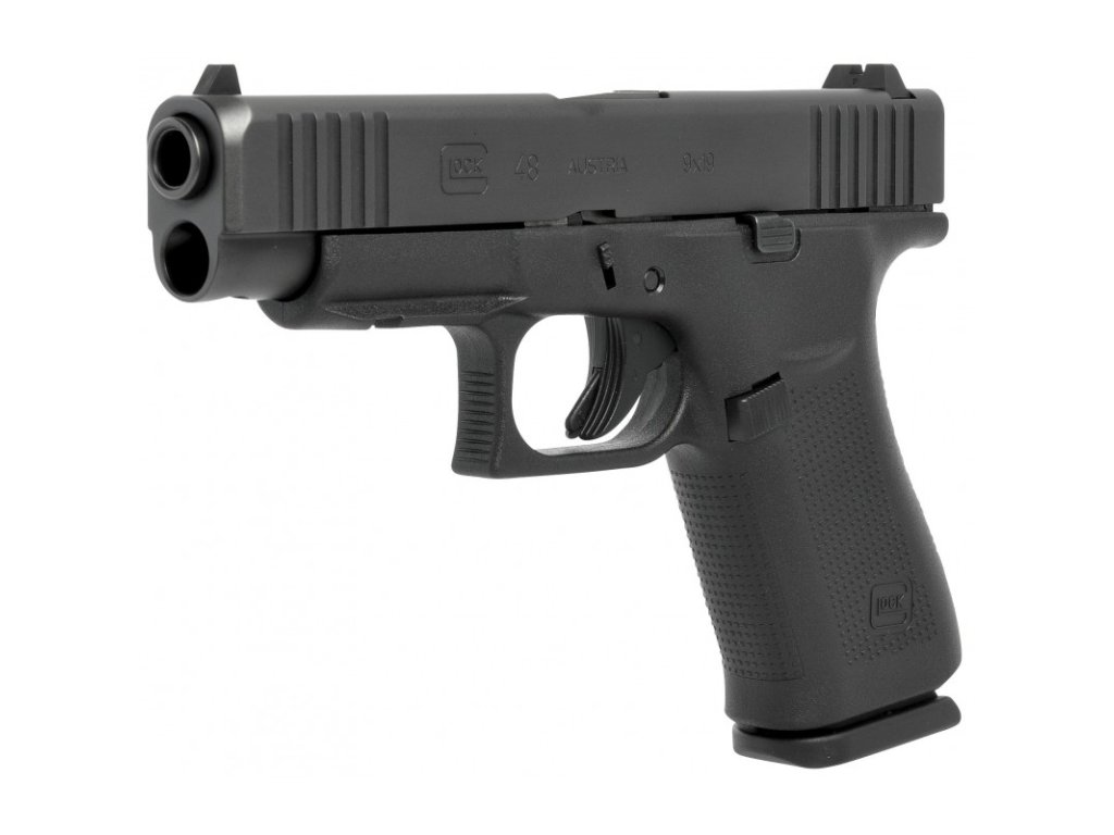 Nové provedení Glocku 48 s railem na rámu zbraně. Jedná se o nejnovější model ve velikosti subcompact s jednořadým zásobníkem v ráži 9x19 řady slimline vhodná pro skryté nošení. Standardně dodávána v sadě se dvěma zásobníky na 10 nábojů.