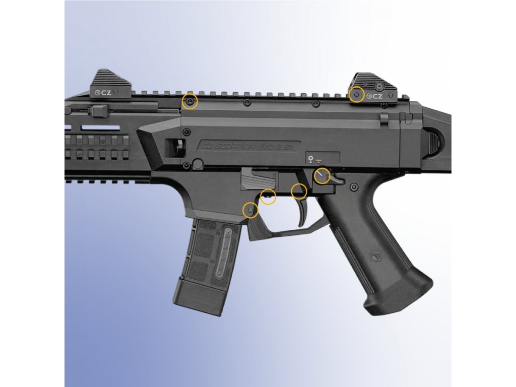 Při úpravách střelných zbraní se někdy setkáváme s rozbitými díly, strženými spojovacími prvky nebo poškozenými čepy. Tyto nepříjemnosti se snažíme zmírnit nabídkou sad spojovacích prvků, které mohou předějít špatné dostupnosti náhradních dílů nebo nákupu nesprávného náhradního dílu.