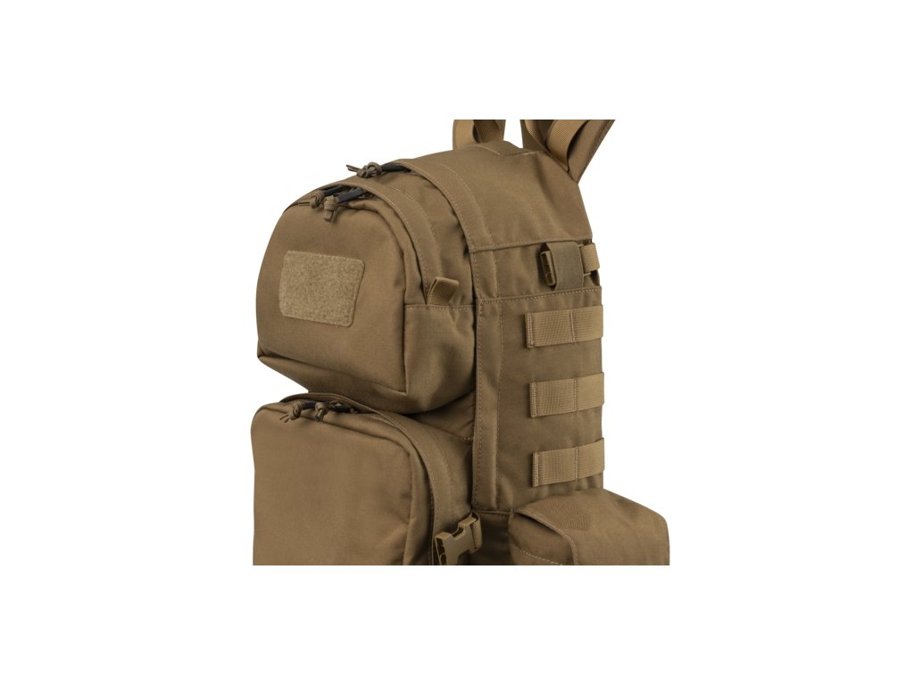Na čele batohu je umístěn beavertail panel, který umožňuje přenášet přilbu, maskovací síť nebo hejkal oblek. Tento panel lze v případě potřeby srolovat a uložit do ploché přihrádky. Dvě boční kapsy jsou ideální pro lahve s vodou nebo munici, přičemž nad nimi se nachází MOLLE vazba pro připevnění dalších sumek. Uvnitř batohu je vyhrazené místo pro hydratační vak, což zajišťuje optimální hydrataci během dlouhých akcí.