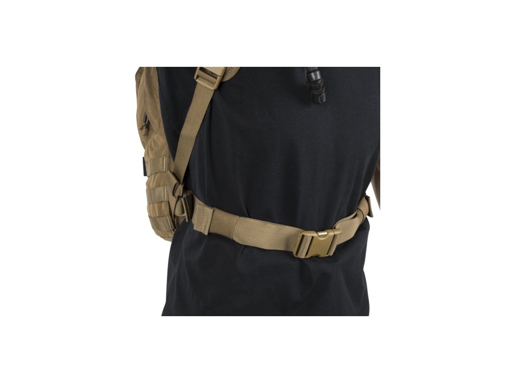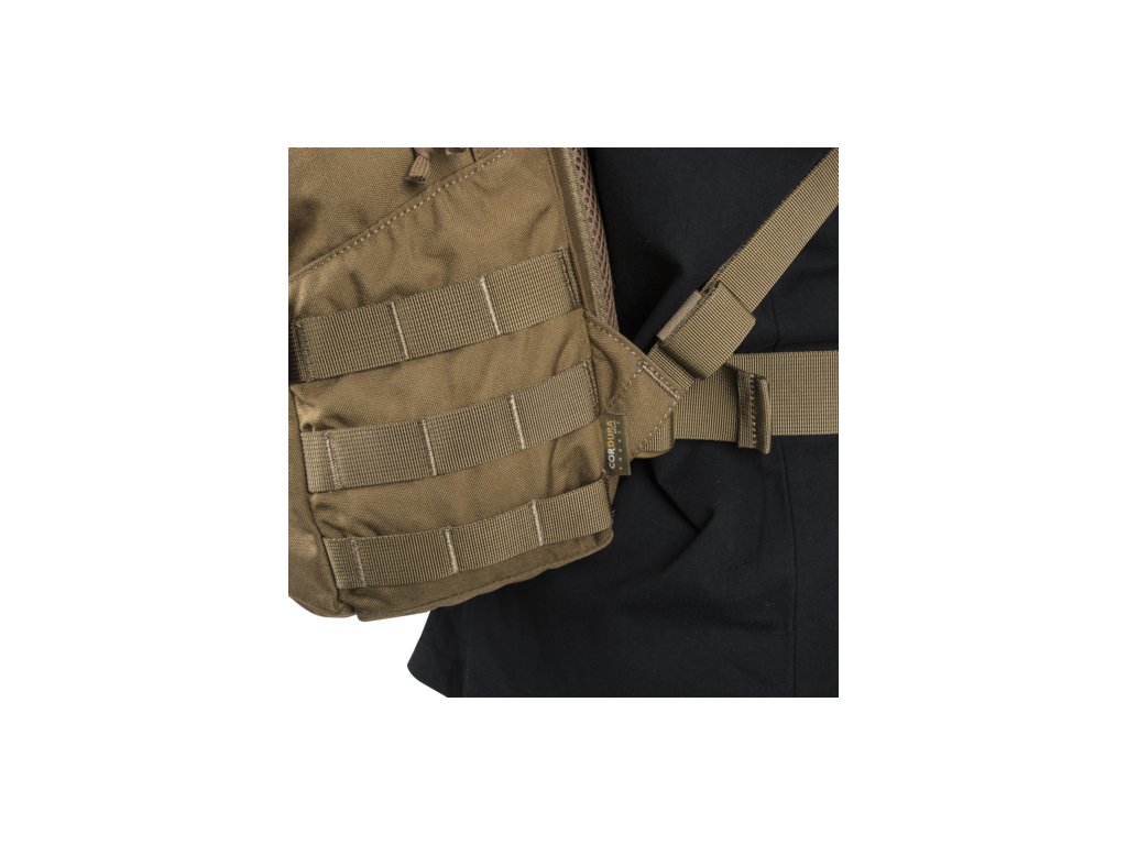 Na čelní straně je velký VELCRO panel pro personalizaci nášivkami a MOLLE/PALS vazba pro připojení dalšího vybavení. Pro pohodlné nošení jsou zde anatomicky tvarované ramenní popruhy, polstrovaná záda s prodyšným materiálem, nastavitelný bederní popruh a hrudní spona. Boční kompresní popruhy zajišťují stabilitu nákladu i při pohybu. Materiál Cordura® 500D zaručuje vysokou odolnost proti opotřebení, zatímco YKK zipy garantují dlouhou životnost.