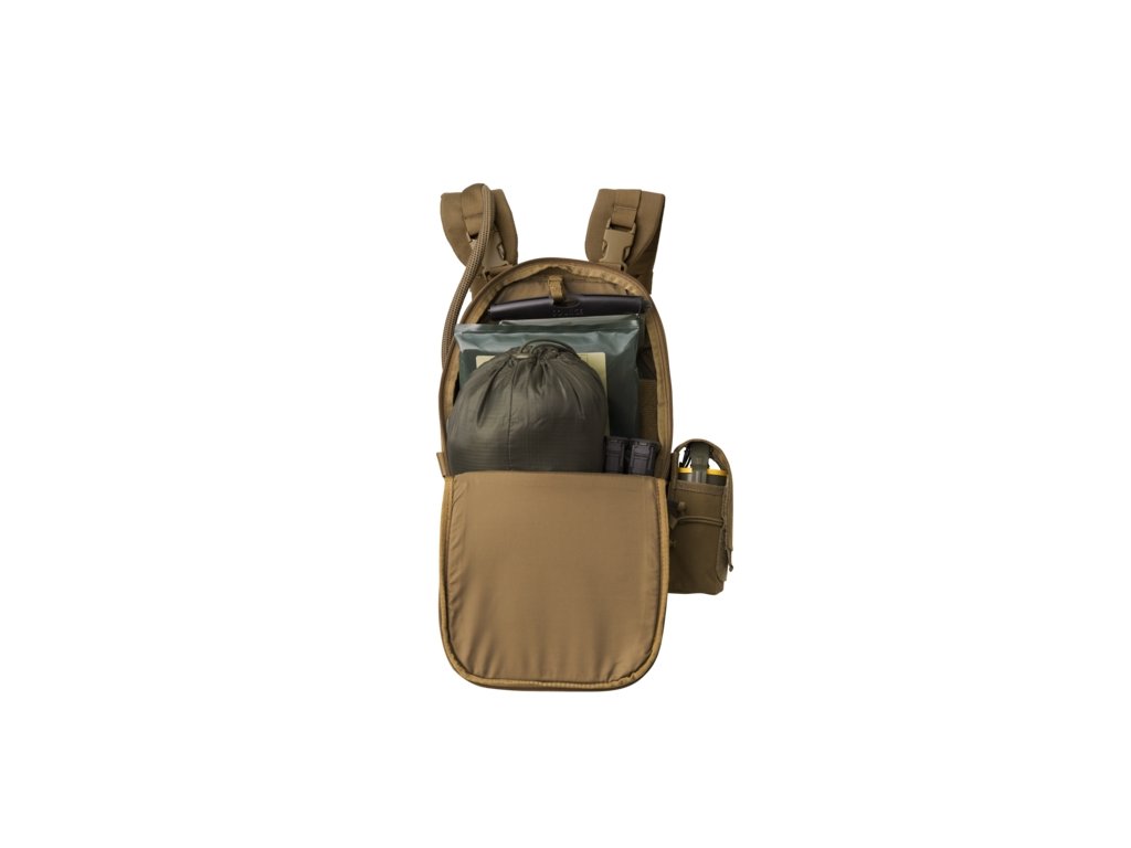 Hlavní komora pojme hydratační vak, oblečení nebo jiné vybavení a je doplněna horní kapsou na zip. Spodní část je vybavena pružným lankem pro uchycení bundy či dalšího vybavení. Boční kompresní popruhy s přezkami G-hook umožňují rychlé přizpůsobení velikosti a stabilizaci obsahu. MOLLE/PALS systém a VELCRO panel na přední straně umožňují snadné připojení další výbavy a personalizaci batohu.