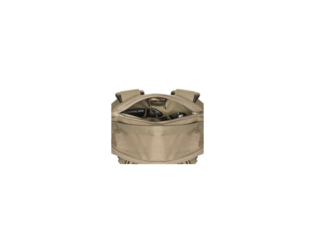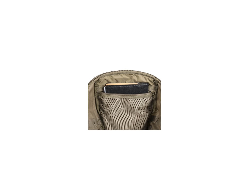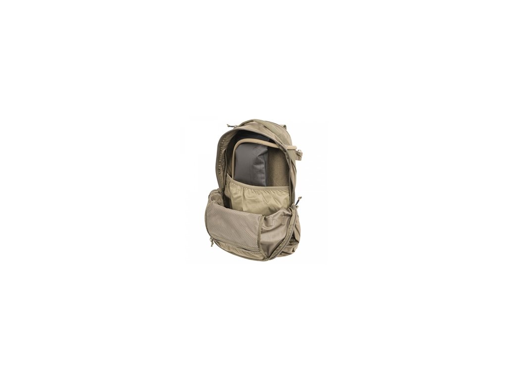 Hlavní komora s dvoucestným zipem obsahuje přihrádku na notebook nebo hydrovak a síťovanou kapsu na drobnosti. Přední bobří kapsa je ideální pro přenášení helmy, bundy či jiného objemnějšího vybavení a slouží i jako kompresní systém. Dvě boční kapsy s elastickým lemem pojmou láhve nebo čutoru, nad nimi se nachází MOLLE vazba pro rozšíření úložných možností. Spodní kapsa skrývá integrovanou pláštěnku.