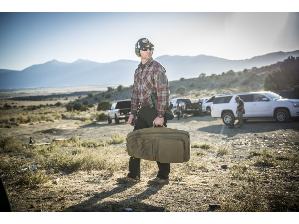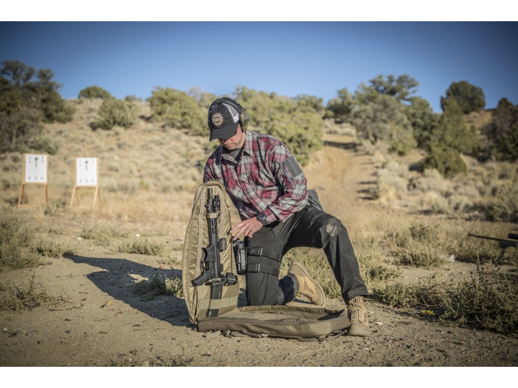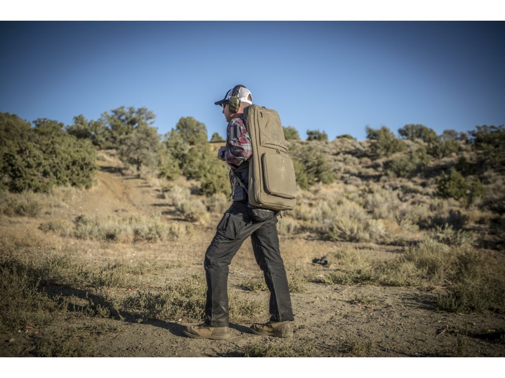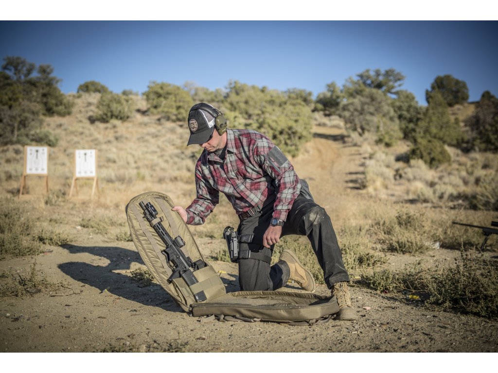 Interiér brašny je vybaven měkkou podšívkou a systémem upevnění, který udrží zbraň pevně na místě. Vnější plně otevíratelné kapsy poskytují prostor pro zásobníky, ochranné pomůcky nebo další nezbytnosti. Ramenní popruhy lze skrýt, když nejsou potřeba, a boční madlo umožňuje rychlé uchopení. Vysoce odolná konstrukce z Cordury® 500D, YKK® zipy a přezky WooJin® zajišťují dlouhou životnost.