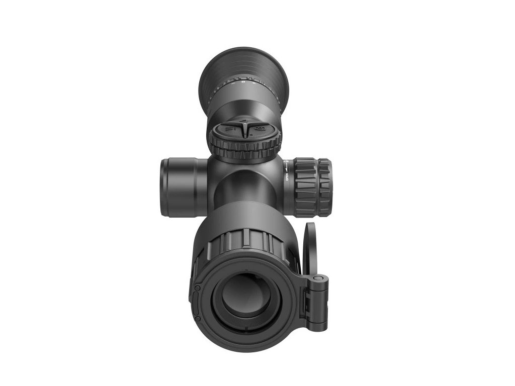 Přepínatelná obnovovací frekvence 100 Hz (Full HD) / 50 Hz (4K) zajišťuje plynulé zobrazení pohybu bez výrazného zpoždění. Optická soustava využívá objektiv 1.57" / 40 mm se světelností F2.0, doplněný o optické zvětšení 3.5× a digitální zoom až 5.8×. Integrovaný laserový dálkoměr umožňuje měření vzdálenosti až 39370" / 1 000 000 mm (1000 m) a spolupracuje s vestavěným balistickým kalkulátorem pro přesnější korekci zásahu.