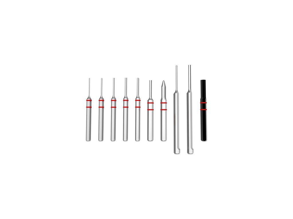 📌 Rozměry vyražečů: 1/16", 3/32", 5/64", 1/8", 9/64", 5/32" a speciální zavaděč
