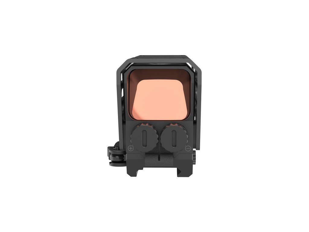 Zařízení je vybaveno snímačem pohybu, který šetří baterii automatickým vypnutím po 2 minutách nečinnosti a okamžitým zapnutím při pohybu. Boční vkládání baterií zajišťuje, že výměna neovlivní nastřelení. Kolimátor má navíc odnímatelný ochranný kryt, který zvyšuje odolnost při transportu a použití.