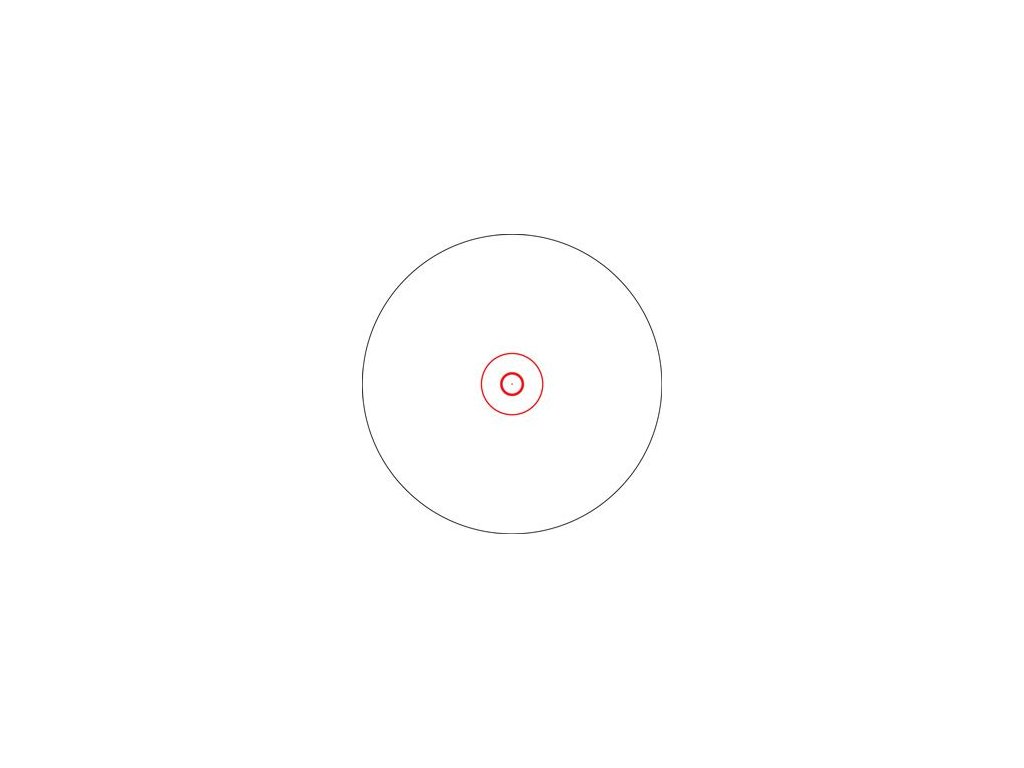 ✅ Záměrný obrazec DRT – 3 MOA tečka, kruhy 44 MOA a 140 MOA