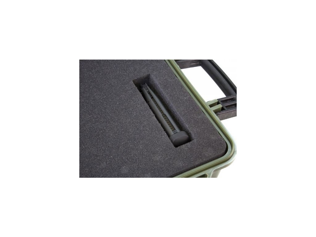Kufr je vyroben z vysoce odolného polypropylenu (PP), který zajišťuje vysokou mechanickou odolnost a dlouhou životnost. Šest zámků s možností uzamčení pomocí visacích zámků výrazně zvyšuje bezpečnost. Integrovaný dekompresní ventil umožňuje použití i při letecké přepravě. Díky vnitřní pěně PnP lze obsah jednoduše přizpůsobit konkrétní zbrani. Kolečka a boční madla zajišťují pohodlný transport i při plném zatížení.