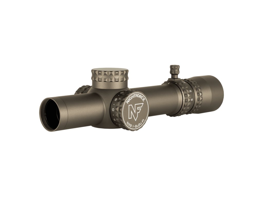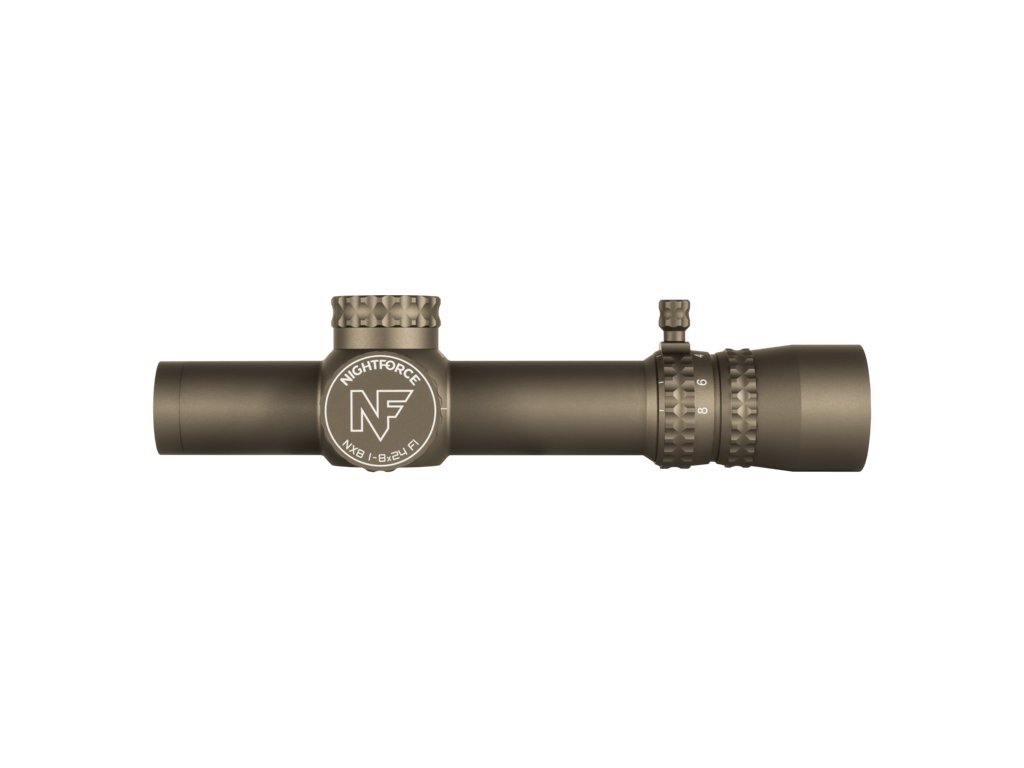 Model NX8 1–8x24mm F1 je navržen pro maximální univerzálnost a odolnost. Na 1x zvětšení umožňuje střelbu s oběma očima stejně rychle jako s kolimátorem, zatímco 8x přiblížení poskytuje dostatečnou přesnost pro střelbu na střední vzdálenosti. Osnova FC-DMx v první fokální rovině se mění se zoomem a nabízí přehledný systém bodů a značek pro rychlé korekce. Červený středový bod je jasně viditelný i při silném denním světle. Funkce ZeroStop dovoluje rychlý a přesný návrat na nulovou hodnotu po korekcích. Kompaktní konstrukce (délka 222 mm, hmotnost 490 g) minimalizuje zatížení zbraně, přičemž odolná konstrukce splňuje nejvyšší standardy Nightforce.