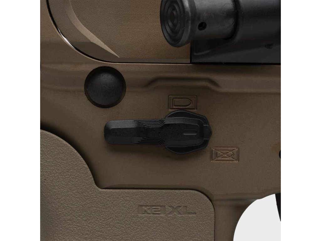 Oboustranná pojistka Magpul ESK je určena pro Mil-Spec pouzdra spoušťového mechanismu platforem AR10, AR15, M4, M16, M110 a SR25. Osa pojistky je vyrobena z precizně obráběné, tepelně upravené chrom-moly oceli s QPQ povrchovou úpravou pro maximální odolnost vůči opotřebení a korozi. Díky možnosti přepnutí mezi 60° a 90° chodem si může střelec zvolit optimální způsob ovládání. Sada obsahuje tři typy páček – plnohodnotnou, krátkou a hybridní, které lze osadit na obě strany osy podle preference. Páčky jsou vyrobeny z vysoce pevného polymeru a zajišťují přesné, bezvůlové ovládání díky drážkovým zámkům. Barevné pojistné kolíčky slouží jako sekundární jištění i indikátor polohy pojistky. Instalace je velmi snadná, bez nutnosti speciálního nářadí, a umožňuje rychlou změnu konfigurace podle potřeby.