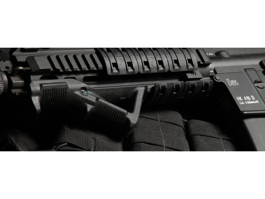 Magpul AFG (Angled Fore Grip) je navržena tak, aby podpořila přirozenější polohu ruky podél osy hlavně, čímž snižuje zvedání ústí při výstřelu a zlepšuje stabilitu při rychlé střelbě.