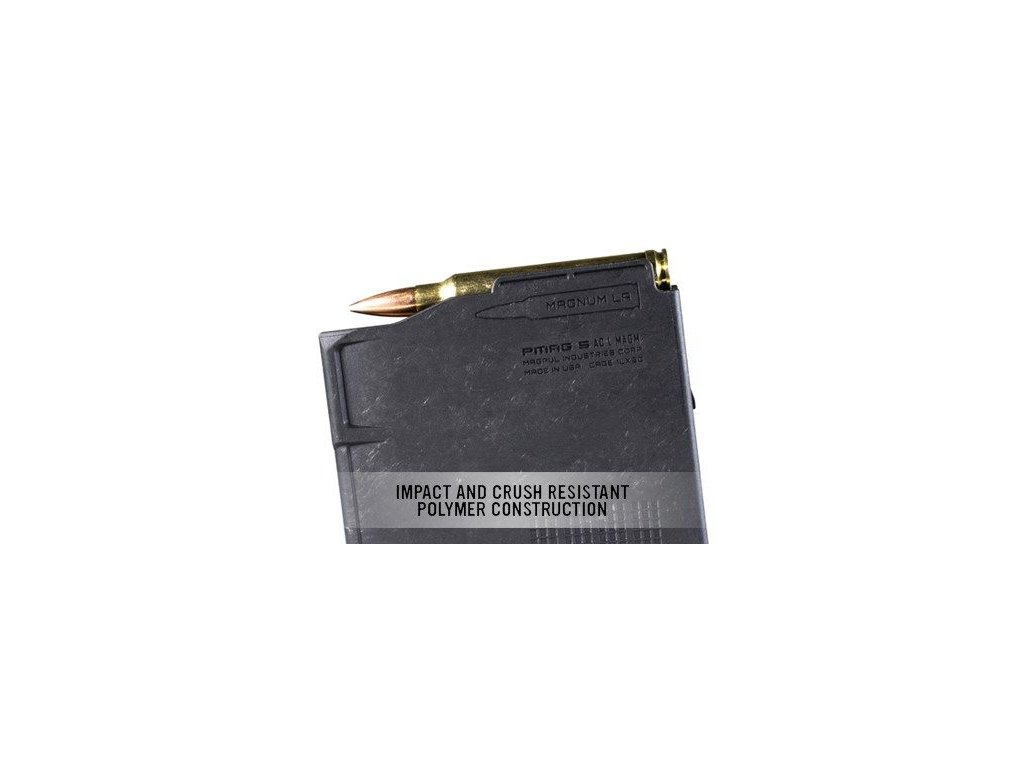 Zásobník Magpul PMAG 5 AC L Magnum je navržen pro použití v puškách s dlouhým závěrem na bázi AICS (Accuracy International Chassis System). Je optimalizován pro náboje .300 Winchester Magnum a další ráže s nábojnicí o průměru 0,530". Konstrukce z polymeru GEN M3 zajišťuje maximální odolnost proti nárazům a opotřebení při zachování nízké hmotnosti. Podavač ze samomazného polymeru s 2% obsahem PTFE (teflonu) a nerezová pružina garantují bezproblémové podávání nábojů i při dlouhodobém použití. Prolisy na těle zásobníku zlepšují úchop a manipulaci i v rukavicích.