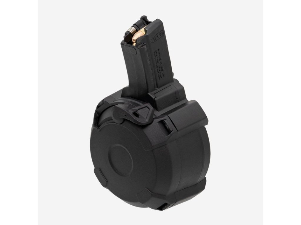 Magpul PMAG D-50 MP je bubnový zásobník určený pro zbraně HK94 a MP5. Je vyroben z odolného polymeru, který zaručuje vysokou mechanickou odolnost i v extrémních podmínkách. Díky kompaktní konstrukci je vhodný i pro střelbu vleže a při přenášení nezabírá zbytečně mnoho místa. Zásobník lze bez problémů zasunout do zbraně s uzavřeným závěrem. Mechanický nabíjecí systém výrazně usnadňuje naplnění zásobníku. Indikátor zbývajících nábojů zvyšuje přehled během střelby a usnadňuje správné plánování přebíjení.