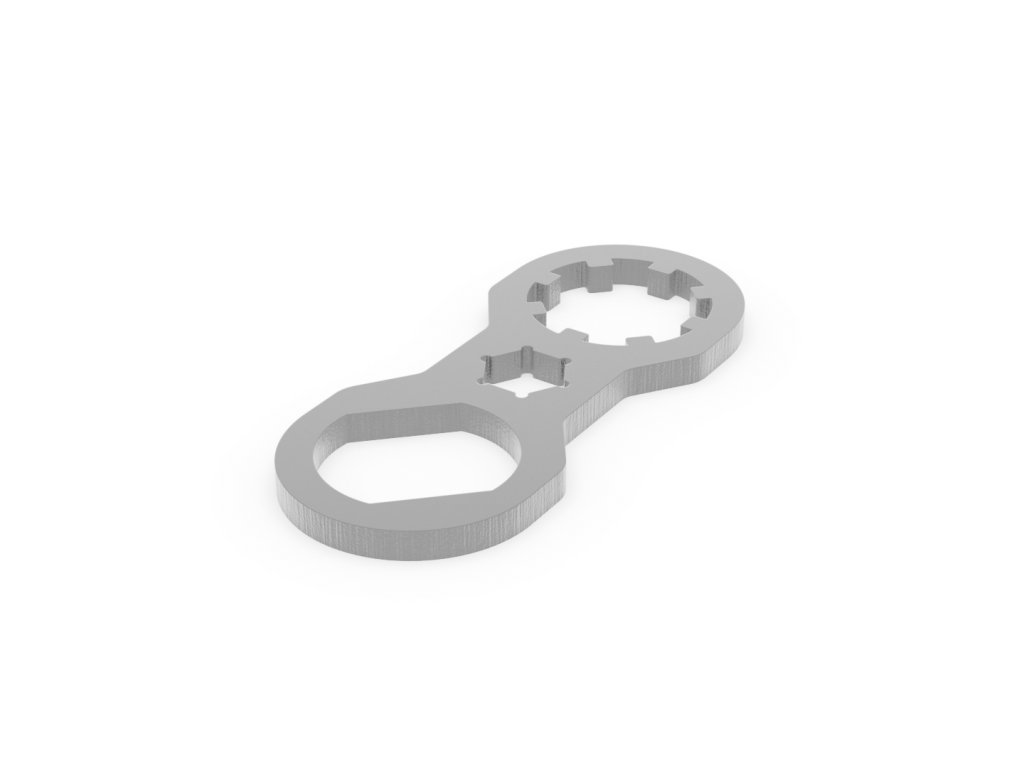 Klíč matice hlavně ze série Warlock umožňuje jednodušší demontáž továrního rozptylovače plynů a matice hlavně/předpažbí. Má rozhraní pro 10mm inbusový klíč