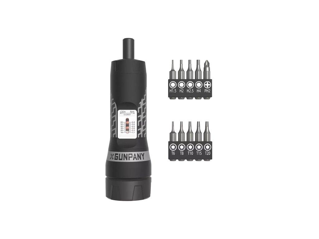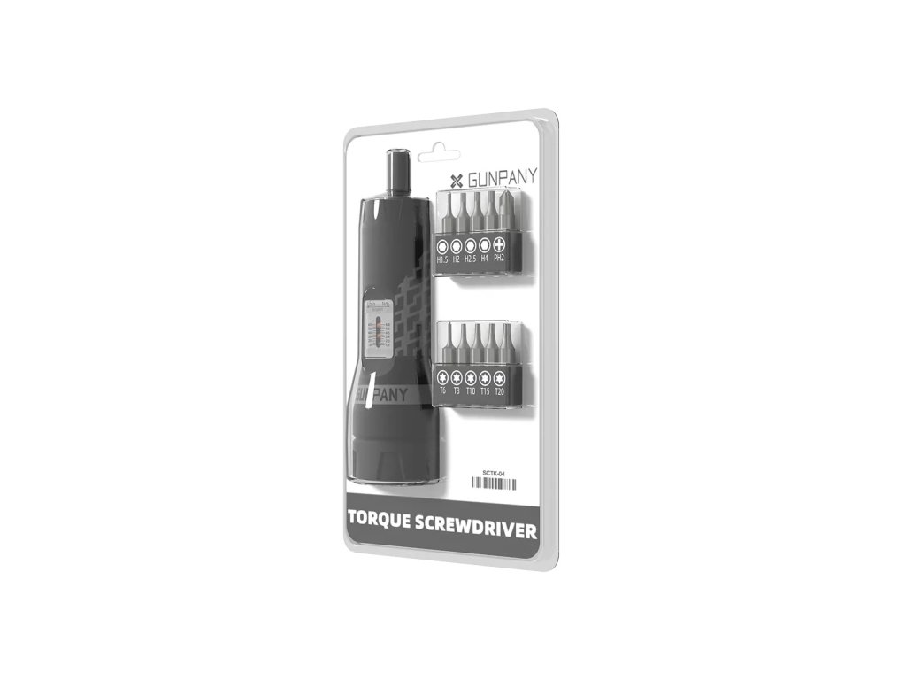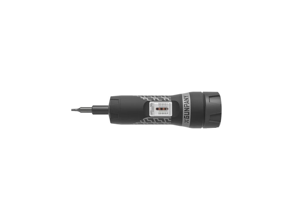 Tento momentový šroubovák je ideální nástroj pro každého, kdo montuje optiku, puškohledy nebo jiné příslušenství na zbraně. Umožňuje přesné nastavení utahovacího momentu v rozsahu 10–60 in/lbs (1,1–6,8 Nm), čímž se výrazně snižuje riziko poškození komponent nebo uvolnění během používání. Pogumovaná rukojeť zajišťuje komfortní a pevný úchop i při delší práci. Součástí balení je 10 výměnných bitů, které pokrývají nejčastěji používané velikosti při montážích.