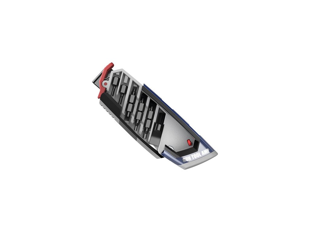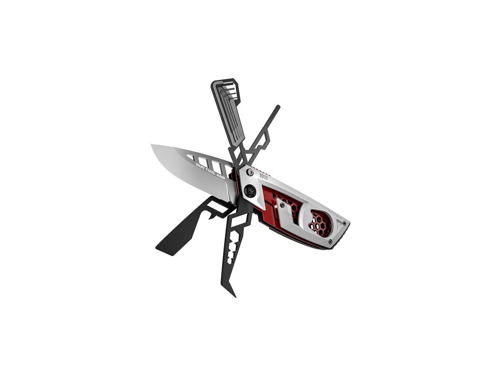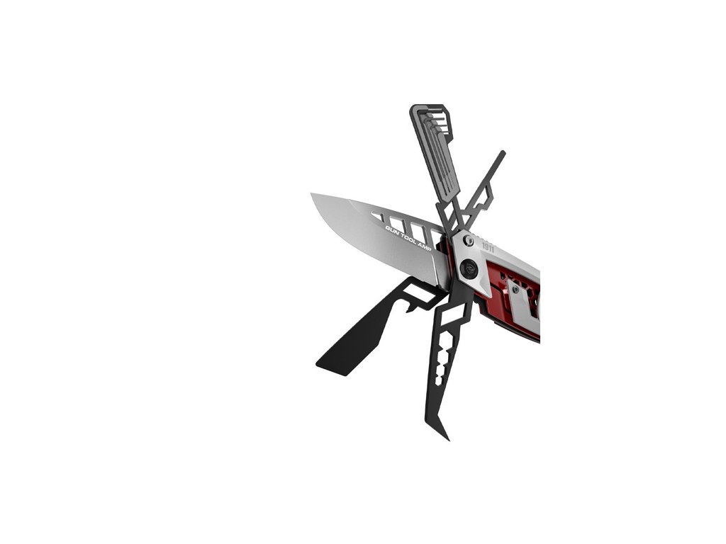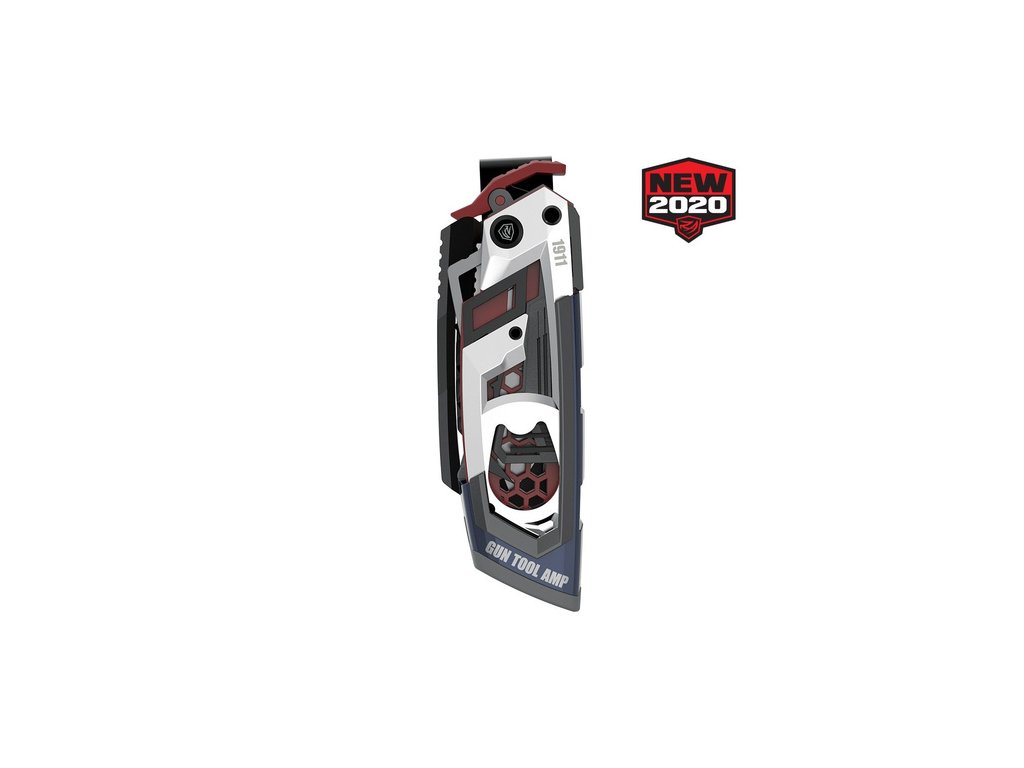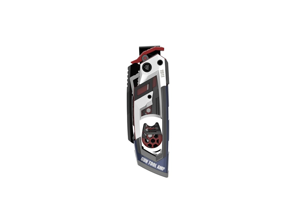 Multitool AMP pro pistole 1911 je navržen speciálně pro potřeby této platformy. Obsahuje klíče na vnější objímku hlavně (pro modely Government, Commander i Officer), sadu imbusů, bitů a magnetických držáků, pilník, škrabku na karbon, vyražeče, šťourák, univerzální klíče a prémiový nůž s černou oxidací. Vše je bezpečně uloženo v pevném těle s klipem na opasek kompatibilním s molle. Vyklápěcí šroubovák s rychloupínákem umožňuje snadnou výměnu bitů přímo v terénu. Multifunkční design ocení každý střelec, který chce mít nářadí vždy po ruce – ať už při střelbě, čištění nebo nouzových opravách.