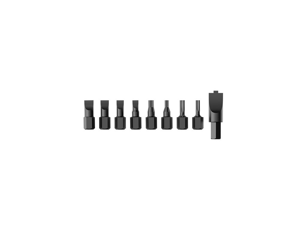 Nástroj je vybaven nožem o délce 66 mm s titanovou černou oxidací, sadou imbusů (0.028", 0.035", 0.05", 1/16"), klíči (4 mm, 5 mm, 1/4", 5/16"), škrabkou na karbon, pilníkem, šťourákem, kladívkem, otvírákem na lahve a rychloupínacím držákem na bity. Magnetické držáky pojmou imbus 3/32", 1/8", torx T10, T15, plochý šroubovák 5/32", 3/16", 7/32" a 1/4". Veškeré nástroje jsou vyrobeny z nerezové oceli, která zaručuje dlouhou životnost a odolnost vůči opotřebení. Vyklápěcí šroubovák je uzpůsoben pro rychlou a pohodlnou výměnu bitů, zatímco klip na opasek zajišťuje snadné nošení.