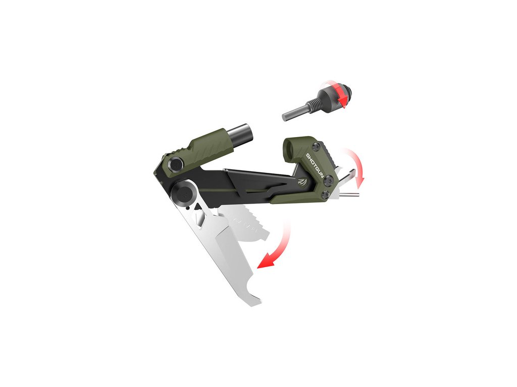 Multitool CORE je navržen jako univerzální pomocník při údržbě a opravách brokovnic všech běžných typů. Nabízí sadu speciálních nástrojů – od klíče na choke až po demontážní pomůcky na čepy a mířidla. Kompaktní rozměry a nízká hmotnost zaručují, že jej snadno přibalíte do brašny, batohu nebo kapsy. Ergonomická konstrukce usnadňuje manipulaci a kvalitní materiály vydrží i náročné zacházení v terénu. Multitool je ideální volbou pro lovce, sportovní střelce i servisní techniky, kteří potřebují spolehlivý a po ruce dostupný nástroj.