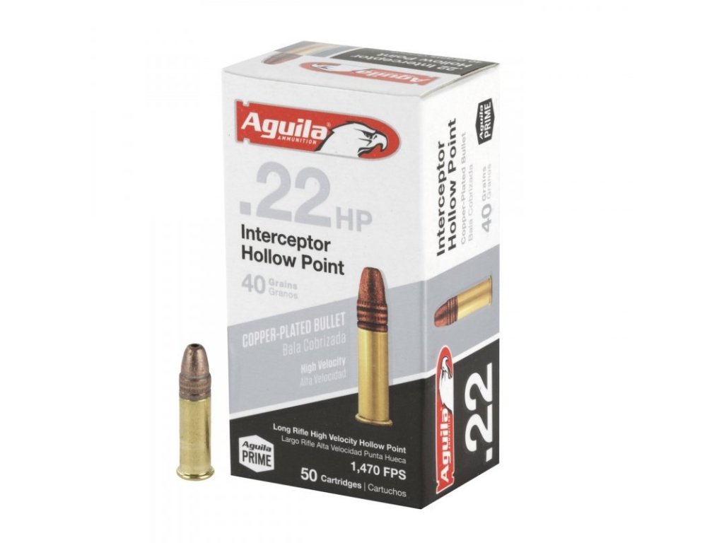 Aguila Interceptor je vysoce výkonné střelivo v ráži .22 LR, navržené pro situace, kde je vyžadována maximální energie a rychlost. Poměděná střela HP (Hollow Point) o hmotnosti 40 gr (2,6 g) nabízí kombinaci vysoké průraznosti a expanzního účinku. Díky extrémně vysoké úsťové rychlosti dosahuje náboj výrazného energetického výkonu, což jej činí vhodným pro lov drobné zvěře, sportovní střelbu i specifické obranné použití. Konzistentní laborace zajišťuje spolehlivou funkci a opakovatelné výsledky.