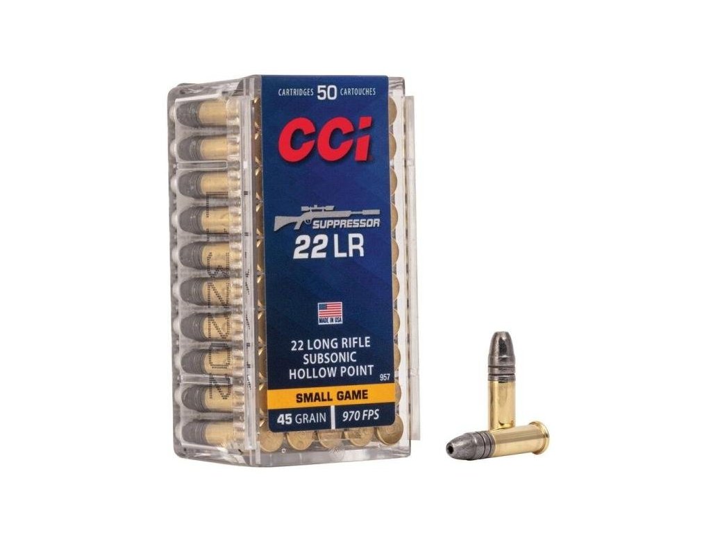 Náboj kulový CCI, Suppressor, 22LR, 45GR (2,92g), Hollow Point