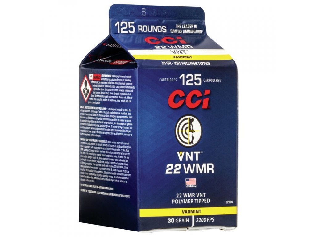 Náboj kulový CCI, VNT Varmint, .22WMR, 30GR, Varmint Tipped, nikolvaná nábojnice