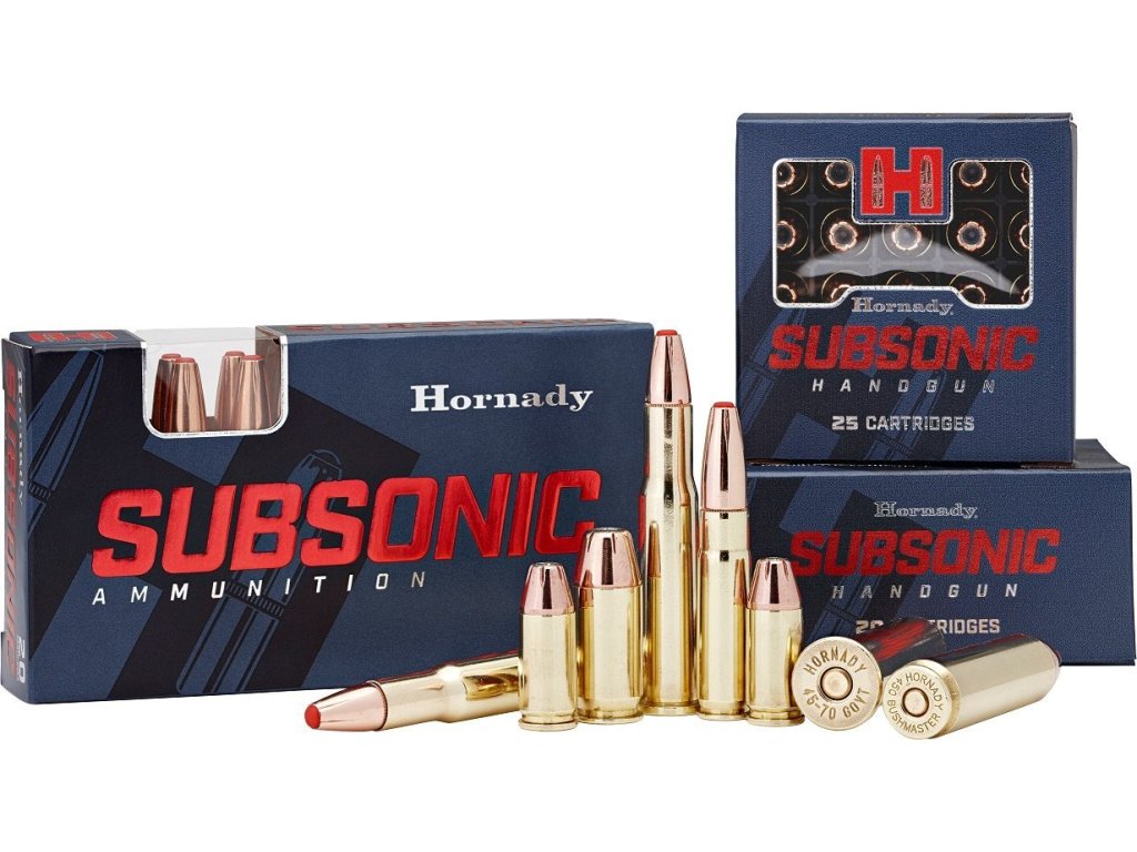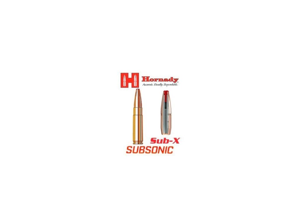Střelivo Hornady Subsonic bylo vyvinuto speciálně pro střelbu podzvukovými rychlostmi a poskytuje vynikající výkon zejména ve spojení s tlumičem. Střela SUB-X je vybavena patentovanou špičkou Flex Tip®, která umožňuje expanzi i při rychlostech pod 274 m/s. Kroužek InterLock® udržuje jádro a plášť pohromadě během expanze a zajišťuje maximální účinek v cíli. Díky sníženému zpětnému rázu a nižší hlučnosti je ideální nejen pro lov a taktické využití, ale i pro začínající střelce.
