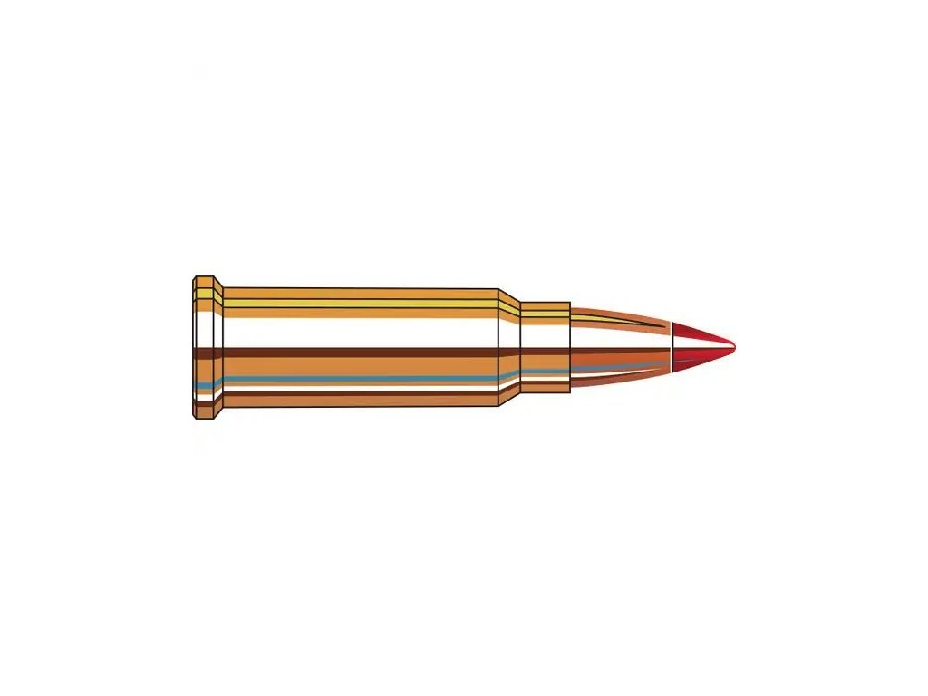 Zlacený kovový plášť, speciálně navržené olověné jádro a polymerová špička společně vytváří expanzi směrem ven a vedou k rychlé fragmentaci střely V-MAX.