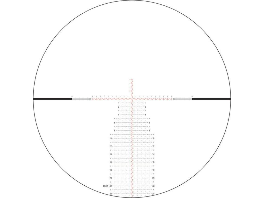 - MIL-XT má jednoduchoumalou tečku uprostřed a hlavní horizontální a vertikální linky s dílci po 0.2 MRAD, kde je každý MRAD očíslován, aby bylo přenášení jednoduché a rychlé i za ztížených podmínek