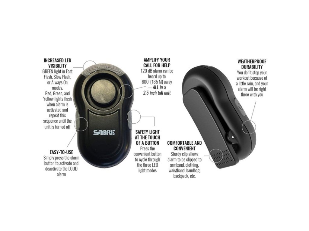 Pohodlná integrovaná spona se dá připevnit na sportovní oblečení a tašky. Osobní ochrana, které můžete věřit: SABRE je značka pepřového spreje č. 1, kterému důvěřují běžní spotřebitelé i policie Siréna o hlasitosti 120 dB je slyšitelná až do 395 metrů 3 světelné režimy (vždy zapnuté, pomalý blesk a rychlý blesk) Kompaktní a snadno se nosí Balení obsahuje odkazy na bezplatná tréninková videa