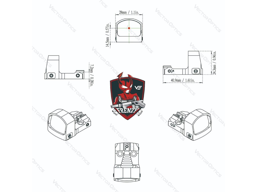 ✅ Vector Optics FRENZY-S 1x17x24 MOS BLK je ultralehký pistolový kolimátor s hmotností pouhých 19 g, patřící mezi nejlehčí MRDS na trhu. Nabízí přepínatelné záměrné body (3 MOA tečka, 42 MOA kruh, 50 MOA kruh s tečkou), 8 intenzit pro denní použití a 2 úrovně kompatibilní s NVG. Díky pohybovému senzoru se kolimátor zapíná automaticky a výdrž baterie CR2032 dosahuje až 20 000 hodin.