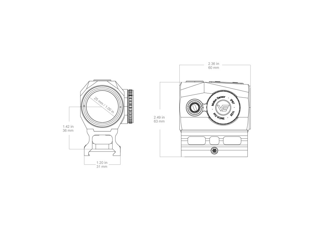 Vector Optics SCRAPPER Ultra Compact BLK je kompaktní kolimátor, který kombinuje extrémní odolnost a minimalistické rozměry. Díky tělu z leteckého hliníku 7075 T6 je lehký, ale současně odolný i vůči zpětnému rázu až 1000G (odpovídá ráži .338 Lapua Magnum). Kolimátor využívá 3 MOA tečku s 10 úrovněmi jasu, z toho 2 kompatibilní s NVG. Je vybaven funkcí pohybového senzoru, který šetří baterii automatickým vypnutím po 3 minutách nečinnosti. Díky bočnímu zásobníku na baterii CR2032 není nutné kolimátor demontovat a ztrácet nastřelení. Ultra kompaktní design umožňuje použití i na menších zbraních, jako jsou PCC nebo SMG.