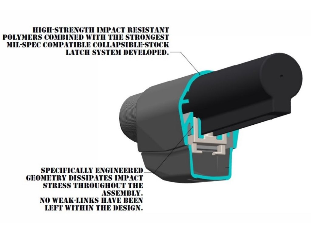 BCM GUNFIGHTER Mod 0 vznikla po více než roce intenzivního vývoje a testování jako nejpevnější ultralehká pažba na trhu pro MILSPEC buffer tube. Ergonomický tvar bez ostrých hran zajišťuje bezpečnou manipulaci a minimalizuje riziko zachycení o výstroj. Modulární systém VBOST umožňuje připevnění popruhu podle aktuálních potřeb, dvě možnosti uchycení popruhu včetně QD slotů zvyšují variabilitu. Integrovaná gumová botka výrazně zlepšuje oporu v rameni i při dynamické střelbě. Pažba je vyrobena z prémiového polymeru, který je extrémně odolný vůči mechanickému poškození.