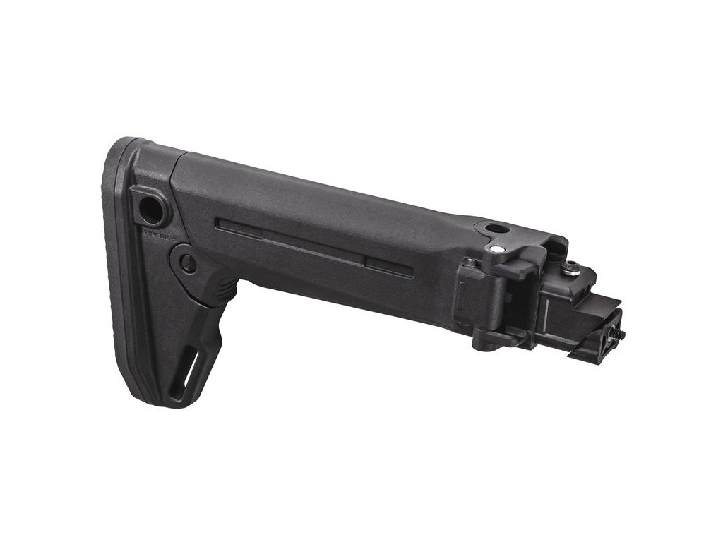 Robustní polymerová konstrukce zajišťuje dlouhou životnost i při náročném používání. Sklopný mechanismus je pevný a spolehlivý, teleskopické nastavení umožňuje volbu z pěti délek. Pažba je kompatibilní s puškami AK-47, AK-74 a Saiga bez nutnosti složitých úprav. Montážní body pro QD poutko a další příslušenství rozšiřují možnosti použití.
