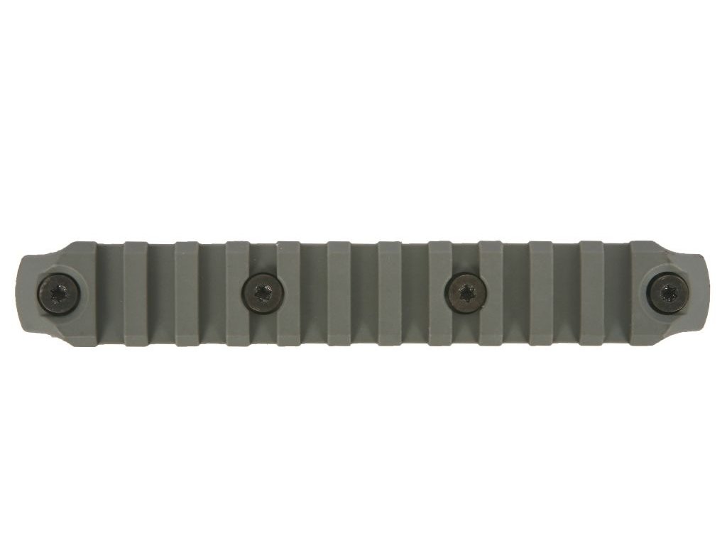 Rail pro KeyMod předpažbí. Kolejnice je vyrobena z lehkého rázuvzdorného polymeru.