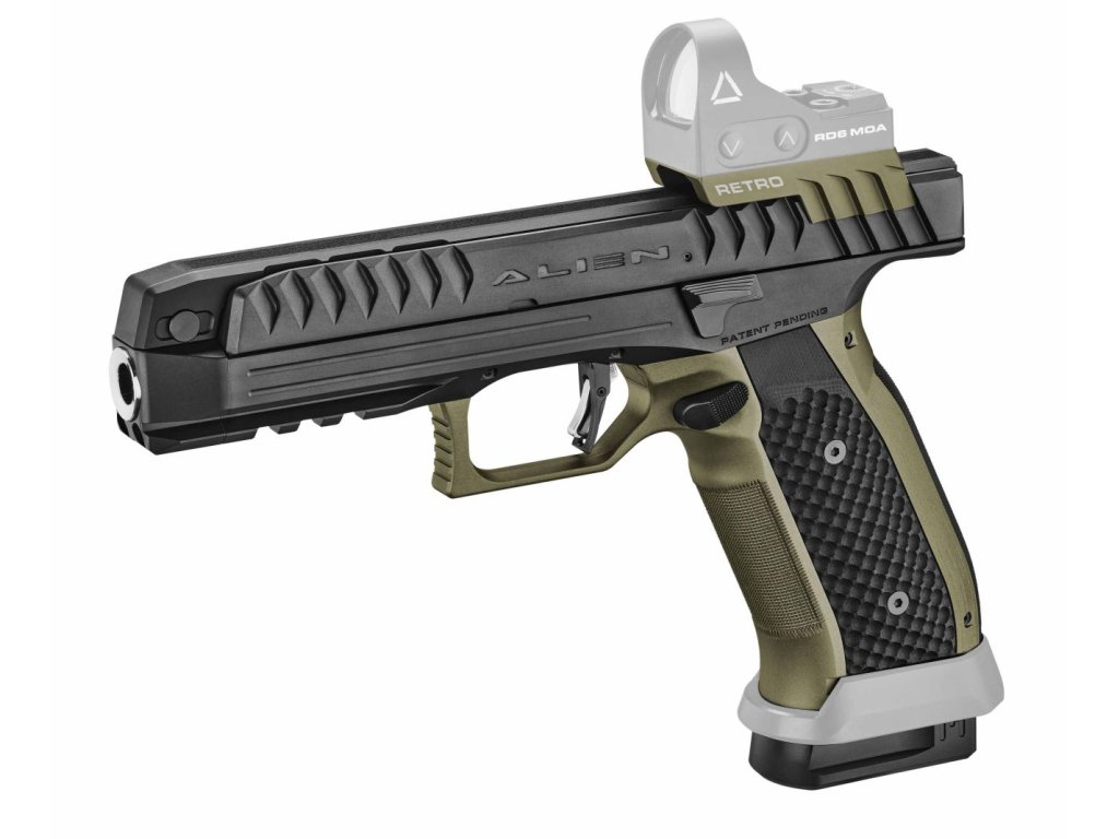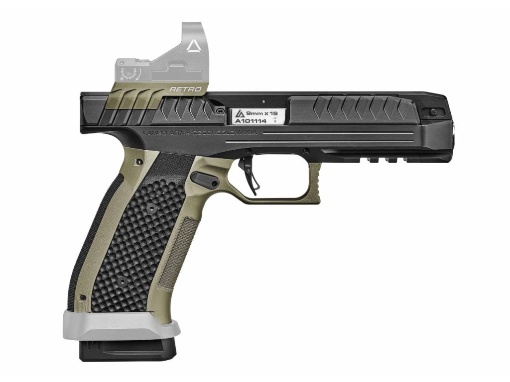 ✅ Laugo Arms Alien Retro Kit je moderní sportovní pistole v ráži 9 mm Luger (9×19 mm), která kombinuje revoluční technologii platformy Alien s konfigurací inspirovanou klasickými mířidly. Nabízí pevnou hlaveň, extrémně nízko uloženou osu hlavně a hybridní spoušťový mechanismus, což zajišťuje špičkovou přesnost, minimální zdvih a maximální kontrolu při střelbě.